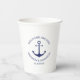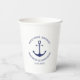 Wedding navy blue and white nautical anchor names paper cups