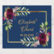 A trendy and elegant sparkling wine bottle label for a bohemian, boho style wedding or wedding anniversary. Decorated with a faux gold frame. With watercolored roses in burgundy. Elegant navy blue background. Templates for names and a date. The names are written with a modern hand lettered style script. Golden coloured letters.