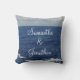 Pretty beach destination themed wedding. White Foam Ocean Waves Blue Sky Throw Pillows. Personalise with the Bride and Groom's Names on front of pillow in white script, and on back of pillow type in Wedding Date. Photograph taken while on a cruise ship from the East Coast to the islands. Great gift for the newlyweds, beach destination wedding, or any beach lover or for the vacation beach house. Original Photography © TamiraZDesigns.