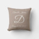 Perfect wedding present for the newlyweds. Commemorate their special day with their monogram names, date, and family name initial. It would also make a perfect anniversary gift. It's reversible to a brown pillow.