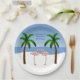 Wedding or Engagement Flamingos Beach Palm Trees Paper Plate