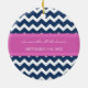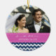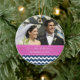 Customisable photo wedding ornament in elegant and modern dark navy blue, fuchsia bright pink, and white fun chevron zigzag pattern. Perfect as a christmas keepsake to remember your special day or celebrate your first christmas or as personalised wedding favours.