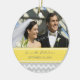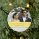 Customisable photo wedding ornament in elegant and modern charcoal grey, bright lemon yellow, and white fun chevron zigzag pattern. Perfect as a christmas keepsake to remember your special day or celebrate your first christmas or as personalised wedding favours.