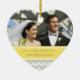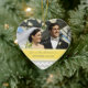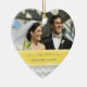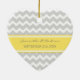 Customisable photo wedding ornament in elegant and modern charcoal grey, bright lemon yellow, and white fun chevron zigzag pattern. Perfect as a christmas keepsake to remember your special day or celebrate your first christmas or as personalised wedding favours.