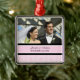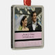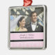 Customisable photo wedding ornament in elegant and modern light pastel blush pink, black and white classic floral damask pattern. Perfect as a christmas keepsake to remember your special day or celebrate your first christmas or as personalised wedding favours.