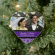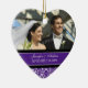 Customisable photo wedding ornament in elegant and modern eggplant dark purple, black and white classic floral damask pattern. Perfect as a christmas keepsake to remember your special day or celebrate your first christmas or as personalised wedding favours.