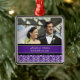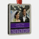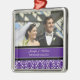Customisable photo wedding ornament in elegant and modern eggplant dark purple, black and white classic floral damask pattern. Perfect as a christmas keepsake to remember your special day or celebrate your first christmas or as personalised wedding favours.