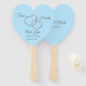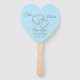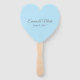 This paddle fan is shown in a lovely heart shape with silver tone crystal hearts with fancy script text with sample names and date, customise and change the names and date to yours.