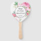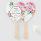 This wedding hand paddle fan is shown in a lovely pink floral watercolor print.