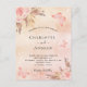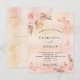 A rose gold, blush pink rustic faux metallic looking background. Decorated with rose gold and pink florals, roses, pampas grass and butterflies. Personalise and add names and details.
