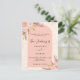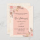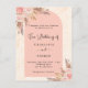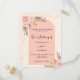 For a modern boho style wedding. An arch frame and rose gold marble print as background. Decorated with rose gold and pink florals, roses and pampas grass. Personalise and add names and details.