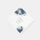 This wedding designed paper napkin is shown with a romantic blue mix floral print. Text colour is navy blue.