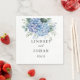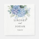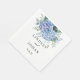 This wedding paper napkin is shown with a lovely blue hydrangea watercolor print.