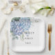 This wedding designed paper plate is shown with a romantic blue hydrangea watercolor print.