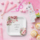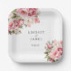 This wedding designed paper plate is shown with a romantic pink peony print.