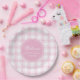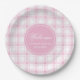 Wedding Party Paper Plates Pink Plaid Custom Name