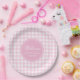 Wedding Party Paper Plates Pink Plaid Monogram Sty
