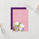 An elegant and stylish wedding invitation featuring a pastel bouquet and pastel pink theme. The customisable text is in elegant script against a pink background. This invitation features a cluster bouquet of wedding flowers including pale pink roses, purple hydrangeas, white Calla lillies and white orchids. A simple, elegant design for your special day. Purple highlights.