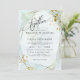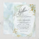 WEDDING INVITATION | Hand painted jaspé in pastel shades of pale dusty blue and accented with hints of light sage green - accented with gold nuggets at the corners and a crystal style frame in gold with a sheer white centre highlighting the invitation text. Handwritten script calligraphy text on the diagonal "together" at the top allows a warm personal appeal - easy to personalise template.
