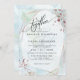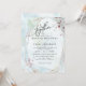WEDDING INVITATION | Hand painted jaspé in pastel shades of pale dusty blue and accented with hints of light sage green - accented with rose gold nuggets at the corners and a crystal style frame in rose gold with a sheer white centre highlighting the invitation text. Handwritten script calligraphy text on the diagonal "together" at the top allows a warm personal appeal - easy to personalise template.
