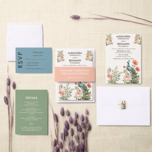 Wedding Peacock Botanical | Vintage Floral Art Invitation