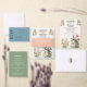 This elegant wedding design showcases a refined watercolor peacock framed by soft botanical florals in peach, cream, and muted green tones. Inspired by vintage botanical illustrations, the artwork creates a joyful yet sophisticated atmosphere that feels timeless and romantic.
