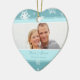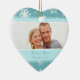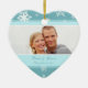 Winter Wedding photo ornament customisable with your own wedding photo and wedding date in elegant turquoise blue and white with festive snowflakes pattern. A stylish christmas gift for family and friends or to decorate your christmas tree or home for the holidays. The perfect way to remember your winter wedding day.