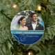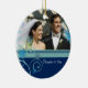 Winter Wedding photo ornament customisable with your own wedding photo and wedding date in elegant blue and turquoise with festive snowflakes and swirls pattern. A stylish christmas gift for family and friends or to decorate your christmas tree or home for the holidays. The perfect way to remember your winter wedding day.