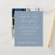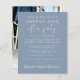 Affordable dusty blue save the date announcement for a reception or party to celebrate your elopement or private wedding. The front features "Save the Date For Our Happily Ever After Party" in a mix of simple white typography and an elegant white script with swashes, your customised wedding announcement, party or reception save the date details and your names in a signature-like script. The back features your favourite wedding photo, first names and wedding and reception dates.