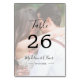 A simple photograph with a modern elegant script is the design for this Wedding table card.