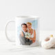 Wedding photo handwritten script coffee mug. Easy to change the names and date.
