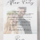 Elegant photo announcement for you elopement or small wedding combined with a reception invitation to announce your marriage to friends and family and to invite them to a post-wedding reception or party. Your personalised announcement and invitation overlays your wedding day photo, and "Happily Ever After Party" is written in a mix of simple typography and a modern script. A tear away RSVP postcard with an entree meal option selection provides a convenient and eco-friendly and envelope-free response from your guests.