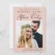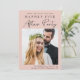 Elegant blush pink save the date announcement for your post-elopement or small wedding reception. The front features your wedding photo and "Save The Date For Our Happily Ever After Party" in a mix of simple typography and a chic modern script. Add your first names and wedding date. On the reverse, personalise your save the date message in more detail and add your names in a signature-like script.