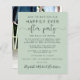 Affordable sage green save the date announcement for a reception or party to celebrate your elopement or private wedding. The front features "Save the Date For Our Happily Ever After Party" in a mix of simple typography and an elegant script with swashes, your customised wedding announcement, party or reception save the date details and your names in a signature-like script. The back features your favourite wedding photo, first names and wedding and reception dates.