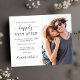 Budget-friendly simple modern wedding save the date announcement featuring your photo and "Happily Ever After" in a mix of simple typography and a stylish script with swashes. Personalise your save the date details and add your names in a signature-like script.
