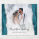 This modern wedding design features teal watercolor agate and silver faux glitter borders on the left and right edges. Personalise it with a photo of the bride and groom, along with their names in elegant handwriting script and the wedding date below. A white gradient filter helps make the black text pop.