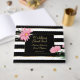 Wedding Guest book - Pink Chrysanthemum on modern Black and White Stripes