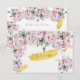Wedding RSVP cards decorated with lovely pink Peony bouquets and gold swash accent. Matching invitation, and menu also available in this design.