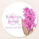 Beautiful painted watercolor floral orchid wildflower wedding paper coasters. Shaded in pink and green hues. Edit these art wedding coasters with your own name and wedding date. Perfect for those who like simplicity and romance. Ideal for both church, country style, garden, and simple registry weddings. A great personal addition to your wedding tables or for after-wedding drinks. Personalise with your bride and groom's names. Perfect for an orchid flower-themed, pink and white or garden weddings. Uniquely painted in pan watercolors and designed by Sarah Trett for www.mylittleedenweddings.com