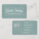 Professional business card designed for wedding planners featuring a green teal floral style for a refined, elegant presentation. The layout keeps contact details clear and easy to read while complementing romantic, floral branding. Ideal for wedding planners, coordinators, and event professionals. Fully customizable text with a clean, print-ready layout.