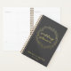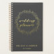 NewParkLane - Plan your big day with this trendy & glamourous spiral planner, with quote 'Wedding Planner' in elegant gold brush script typography in a gold wreath, against a dark grey background.