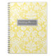 Spiral wedding planner journal with elegant bright canary yellow, grey and white classic floral damask vintage pattern, with customisable text to add your own message. Perfect for organising wedding plans and details, a great gift for the bride to be.