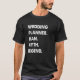 I give wanted to give this a 4 instead of a 5 because these Basic DARK T0shirts run unexpectedly SLIM or Narrow. Which is great if you do not have a potbelly, but I have a paunch. It isn't the shirt's fault that I've got a beer belly. The design and shirt itself is a quality cotton shirt. The color is more of a deep purple, but still a very pretty color. The Basic DARK T-shirts run a bit SLIMMER than the Basic Ts. The neck is a fraction narrower (or seems to be narrower) also. I'm a paunchy middle-aged woman and my neck is 12 inches (31cm) thick and the neckline fell about the same as in the photo of the man, and I had the desire to tug it a bit. So if you're a thick necked man or like loose shirts, be aware these are slimmer shirts. Once I get rid of my lockdown paunch it'll look great. The shirt washed well in cold water with no apparent bleeding. We don't have a dryer, so it hung dry. Did not shrink. Love the colors and the design. The design looks smaller on my shirt than it does on the model on-line. But still, it looks good on the shirt. The printing looks as it does on the model, just the size seems fractionally smaller. Washed garment in cold water, hung dry and design appeared unaffected.