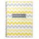 Spiral wedding planner journal with elegant bright lemon yellow, charcoal grey and white retro and casual chevron zigzags stripes pattern, with customisable text to add your own message. Perfect for organising wedding plans and details, a great gift for the bride to be.