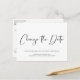Let your guests know that your wedding date has changed with this simple black and white wedding change the date announcement postcard. "Change the Date" is written in contemporary script on the front, and underneath you can personalise your names and your new save the date information. On the reverse side, you can personalise your message in more detail.