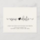 Even if unforeseen circumstances require you to postpone your wedding, let your guests know that your love and wedding will go on with this simple light cream wedding postponement and change the date announcement. "new date" is written in modern typography with a heart joining the two words together. Underneath you can personalise your names and your new save the date information and venue if desired. On the reverse side, you can personalise your change of date information in more detail.