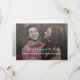 Events can throw a wrench in the works but you can still show your guests you're on course to get this done only it's going to be a little later than planned. Add your favourite engagement photograph on this "Change of Date" announcement card. "We've Changed the Date" is written in large modern script typography and below it are the names. You can change both the message and names, as you do, to suit the theme you intend to convey to your guests.