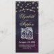 Wedding Program Rack Cards Templates - Elegant Mason Jar & Vintage String Lights on Purple Sparkle Bokeh Lights Background.
