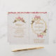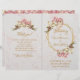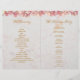 The text has a golden colour, like the gold hexagon, and the titles and the names of the Bride and Groom are written in an elegant calligraphic script. It has the wedding ceremony and the wedding party on the inside and a thank you message on the back cover, with a small orchids decoration above it. On the inside, it has pink orchids on the upper border.