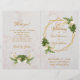 A very modern folded wedding program, combining multiple trends: geometric, marble, metallic (gold) and some special fonts.